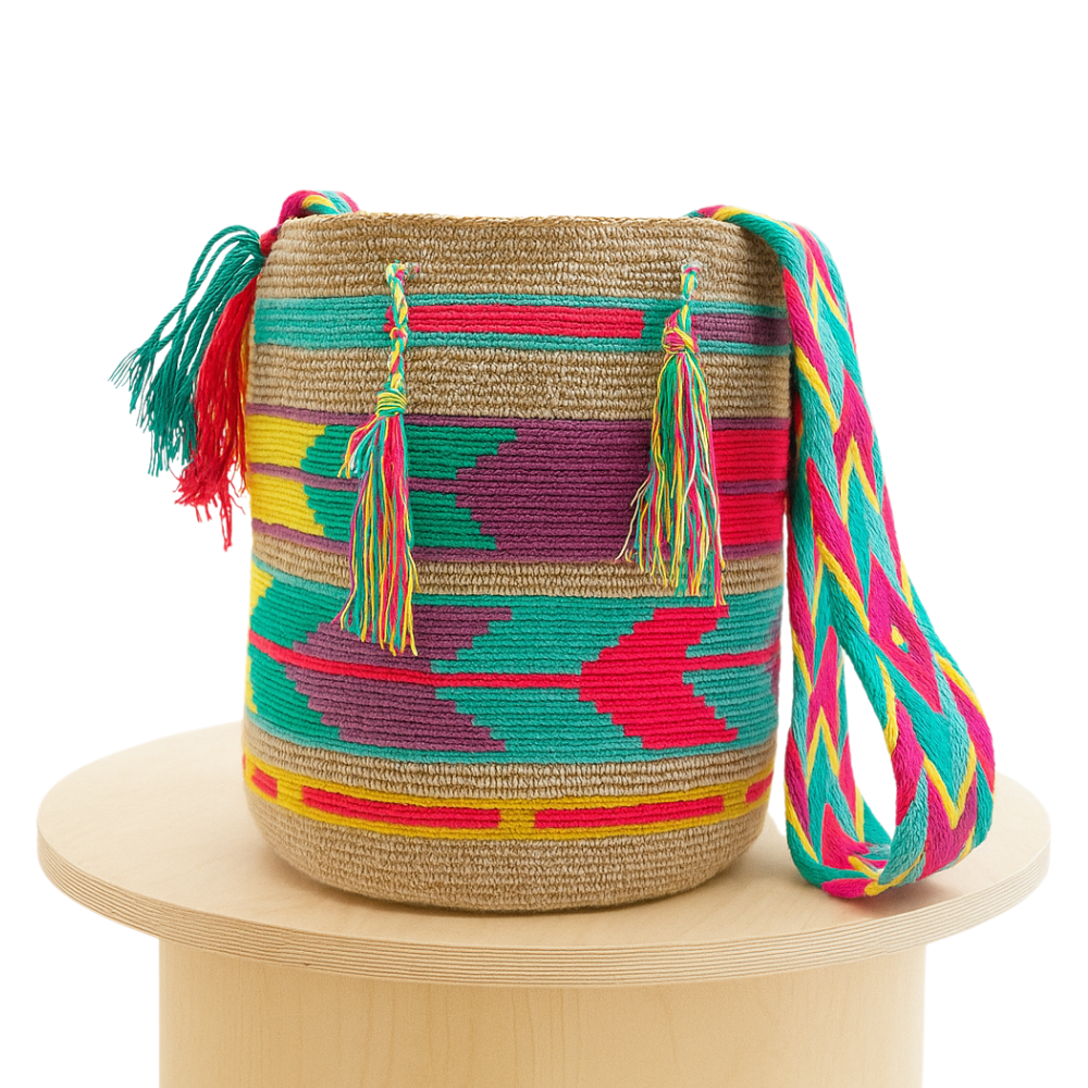 Mochila Wayuu -- Café/rosa/naranja quantity