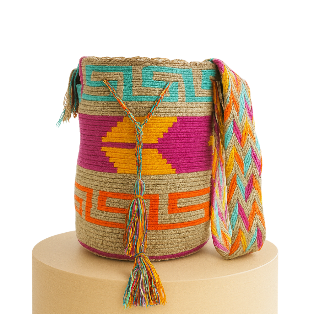 Mochila Wayuu -- Café/rosa/naranja quantity